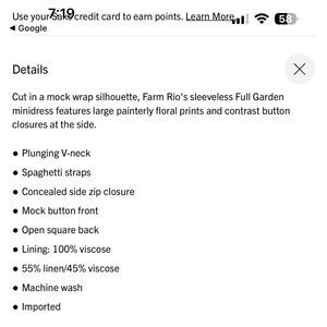 NWT Farm Rio Sleeveless Full Garden Minidress