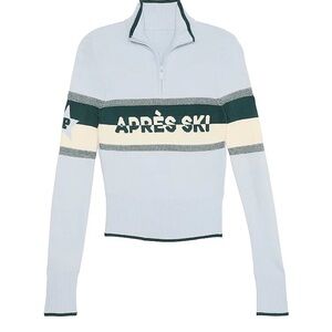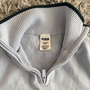 Pink Victoria's Secret Apres Ski Blue Varsity Knit 1/2 Zip Sweater