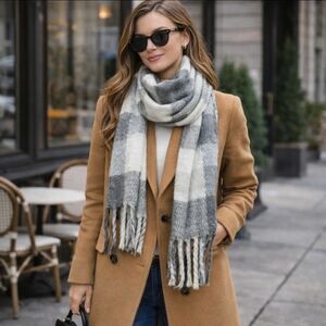 NEW cozy Lauren Conrad oblong blanket scarf wrap cream gray white fringe