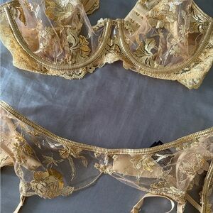 Honey birdette Floral Lace Lingerie Set in Gold