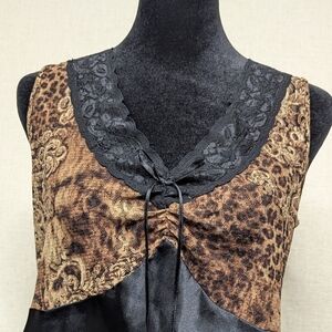 Gilligan & O'Malley Leopard Lace Maxi Nightgown M Slit Valentine's Sexy