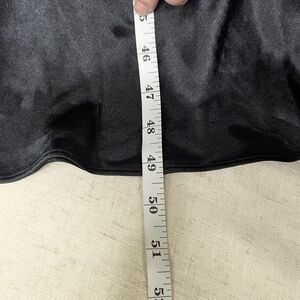 Skirt: Silky, flowy black satin-style fabric.