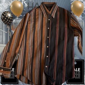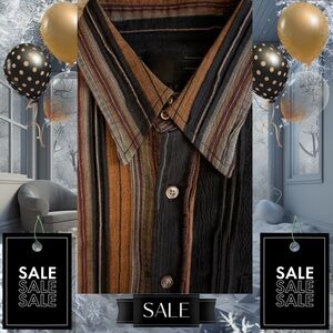 “RARE” - Men's SQ WEAR Long Sleeve Striped Black and Brown Stylish Shirt Med/lrg