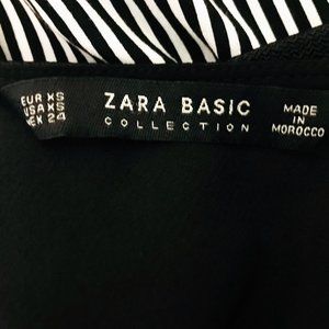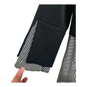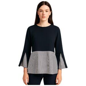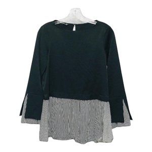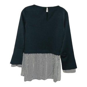 Zara XS Navy Striped Hem Mixed Media Long Sleeve Top