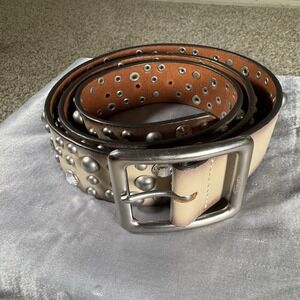 Studded Genuine Leather Rhinestone Ombre Beige 45" Belt Size L