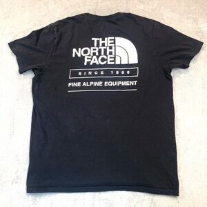 Classic black The North Face short-sleeve tee featuring small chest logo and large back graphic print "Since 1966 / Fine Alpine Equipment." 100% cotton, soft feel, regular fit. Perfect casual everyday wear or outdoor lifestyle piece.