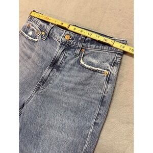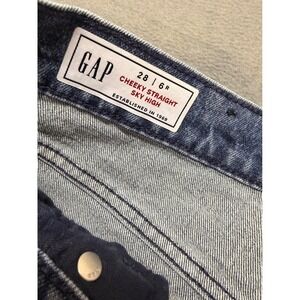 GAP Cheeky Straight Sky High Jeans Women's Size 28 Medium Wash Raw Hem