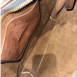 Vintage Coach Satchel in excellent condition. Made in New York City. Clean interior and no odors. Stitching, hardware, piping, and handles are all in very good condition. Leather is supple with only very minimal scratches and scuffs. Creed is present but registration number was glued-in and is missing (see photo). Approximate dimensions are 14" long x 10" tall x 4" wide.