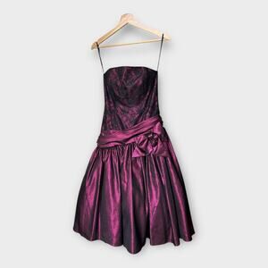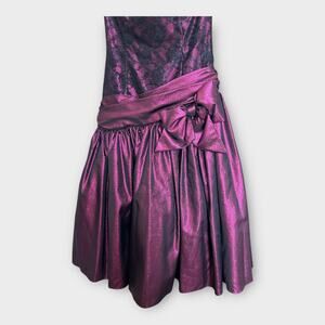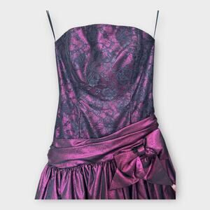 Vintage 80s Loralie Lace Metallic Purple Strapless Formal Dress sz 6 Goth Fairy