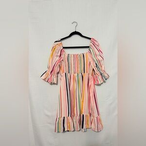 Eloquii Elements Rainbow Stripe Smocked Puff Sleeve Mini Dress Size 16 NWT