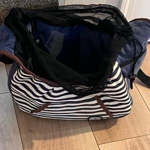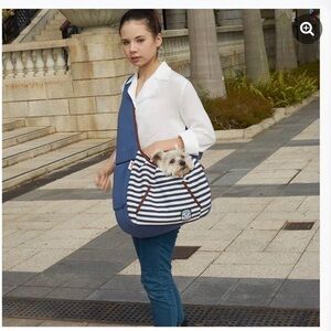 Take your pet on adventures with this nautical striped carrier. Designed for comfort and style, it's perfect for small dogs.