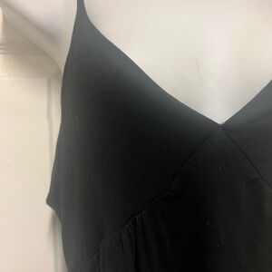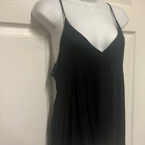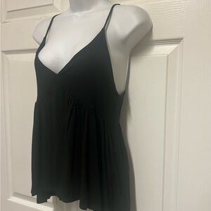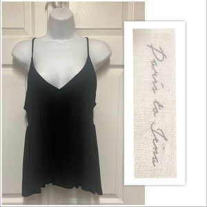 NWNT Paris To Jena Black Camisole Top - Solid black sleeveless v neck babydoll camisole top with adjustabke straps, fitted cuos and a float bottom half. Rayon/Spandex. Size Small. Armpit to armpit is 16 inches wide, length is 25 inches long. Pet, smoke, stain and snag free. New with no tag!