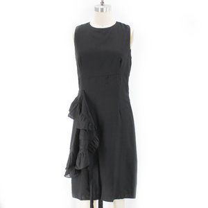 Morgane Le Fay Black Sleeveless Sheath Dress Asymmetric Apron Detail SZ S
