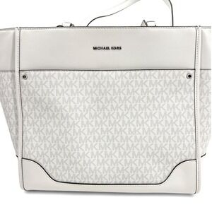 NWT MICHAEL Michael Kors Harrison Large Top Zip Tote in Optic White/ Allum