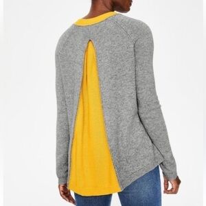 Boden Mollie Wool Cashmere Blend Sweater Color Block Gray and Yellow Sz M