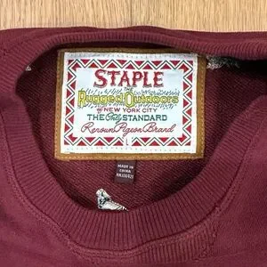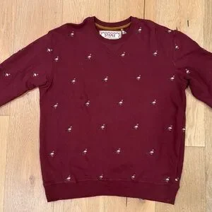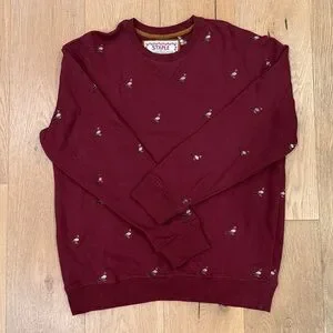 Men’s Staple crewneck sweater, in red/burgundy. Size Large. Has all over pigeon embroidery. Worn only once.
