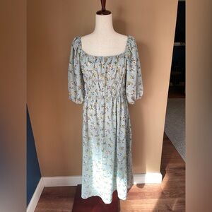 Tory Burch Silk Shirt Dress Long Sleeve Size 10 Ballet Blue Crystals Print