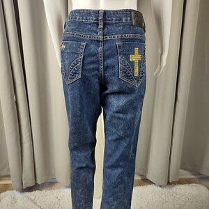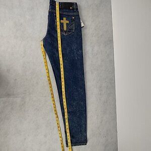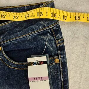 Coogi Women Cotton Blend Blue Gold Cross Pattern On Pocket Denim Jeans Size 11-12 (NWT)