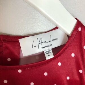 L'Academie red polka dot puff sleeve top. The Eleonora Blouse in Ruby Dot. Size XS.