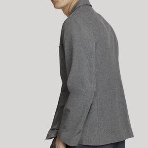 Stylish grey blazer with a modern fit. Features classic lapels and button closure. Ideal for versatile wear.