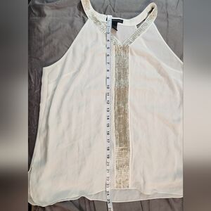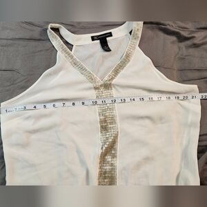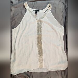 Elegant white halter top with silver sequin detail. Perfect for evening wear.