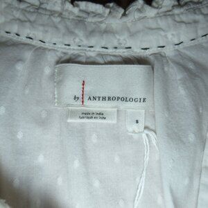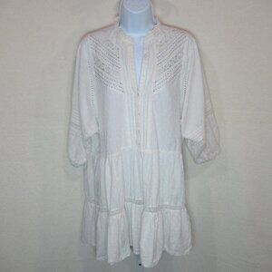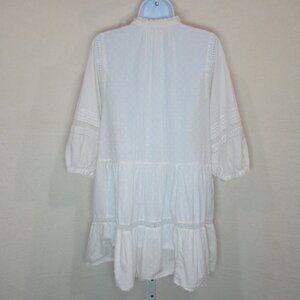 Anthropologie White Swiss Dot Boho Babydoll Dress | Size Small