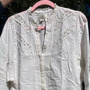 Light, airy, and full of romantic charm 🤍 This Anthropologie dress is crafted from soft white cotton with delicate swiss dot texture, intricate lace and pintuck detailing, and a relaxed babydoll silhouette that feels effortlessly feminine. The ruffled neckline and tiered skirt give it that perfect boho-meets-coastal vibe—easy, breezy, and endlessly wearable from season to season.
