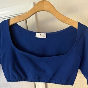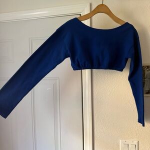 GIL RODRIGUEZ royal cobalt blue cotton square neck cropped long sleeve top tee