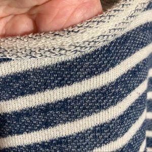 Silverware branded navy and white striped sweatshirt. Size cannot be seen but I believe it is a size a 2X. So comfortable and stylish too! Bust measurement laid flat measures approximately 26.5 inches and length from back neckline to bottom hem is approximately 25.5 inches