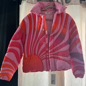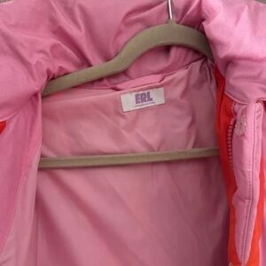Stay warm and stylish with this vibrant utility jacket, featuring a striking blend of pink and red hues. Perfect for adding a pop of color to your wardrobe.