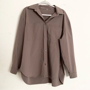 Alo Yoga Pinstripe Daylight Button Down Long Sleeve Mushroom M