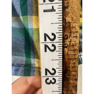 This Tommy Hilfiger Boys Size M (8-10) Button Up Colorful Plaid Long Sleeve Shirt is a stylish and versatile addition to any young boy's wardrobe. Made from 100% cotton corduroy, this collared shirt features a button-down closure and long sleeves, perfect for casual occasions. The colorful plaid pattern and Tommy Hilfiger logo add a touch of retro flair, making it suitable for various seasons. With a regular fit and chest size of 17 inches, this shirt is comfortable and classic, ideal for school or everyday wear.