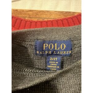 The Polo Ralph Lauren Waffle toddler size 2/2T in gray is a cozy and stylish pullover top perfect for casual occasions. Made from knit fabric, this long-sleeve shirt features the iconic Polo Ralph Lauren logo accent, making it a classic choice for young boys and toddlers. Easy to care for with machine washable instructions, this pullover is ideal for the seasons of summer, fall, and spring, adding a touch of ease to your child's wardrobe.
