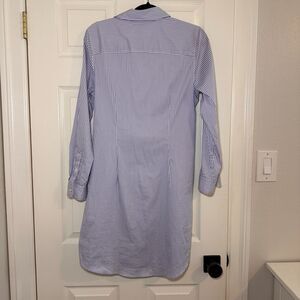 Untuckit Amanda Dress Blue & White Pinstripe Shirt Dress (Size 10)