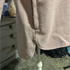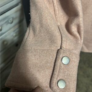 Chic utility jacket in soft pink. Features button closure and front pockets. Ideal for layering.