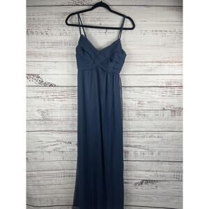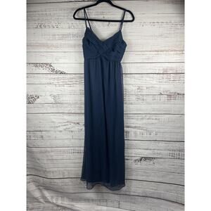 BHLDN Dress Women's Small Blue Chiffon Maxi Gown Ruched Bodice Bridesmaid Formal
