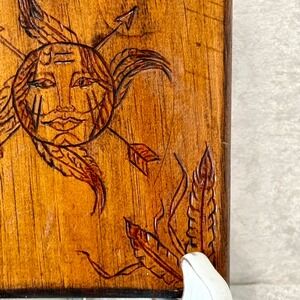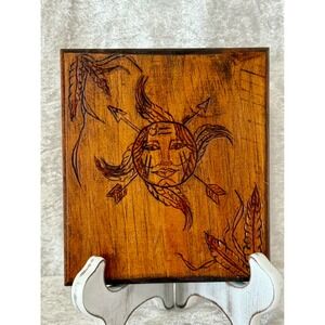 Hand Carved Wood Wall Art Sun Face Feathers Arrows Native American Style 2003
