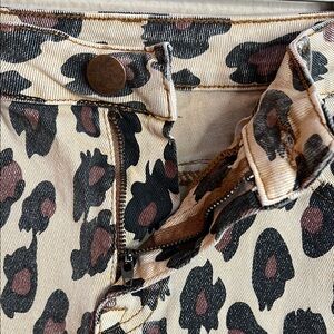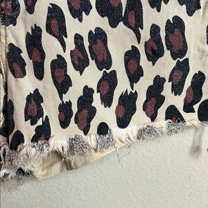 Leopard Denim Sz Large Tan and Black Jean Shorts Raw Distressed Hem