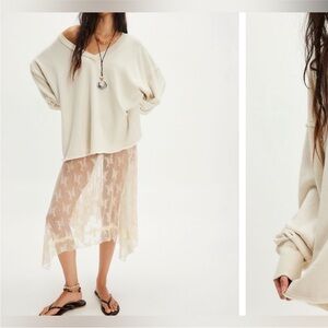 NWT Free People We The Free Venice V-Neck Sweatshirt - grey opal - Large