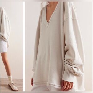 The perfect pullover. This essential sweatshirt from our We The Free collection is featured in a soft cotton fabrication and oversized fit with a deep V-neckline and drop-shoulder sleeves.
