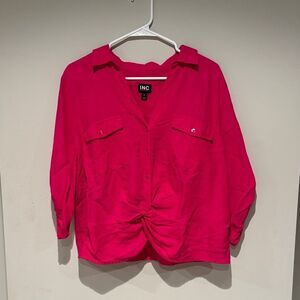 Chic fuchsia button-down by INC International Concepts. Features front pockets and a stylish twist detail.