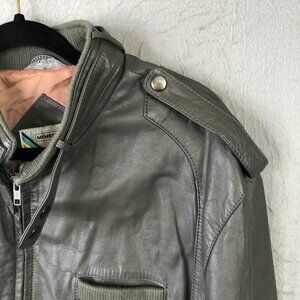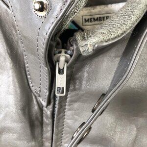 Vintage Members Only Jacket Mens 46 Gray Leather Bomber Moto Epaulets 80s