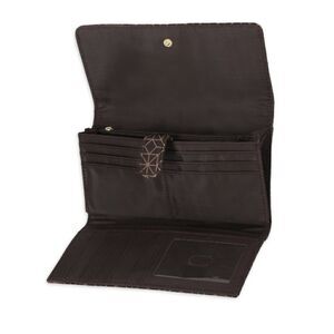 Keep all your cards and personal items on hand with the Piper File master. This beautifully designed foldover wallet will help you keep yourself organized. The accordian style interior pocket allows for coupons, receipts, currency and coins that can go into a zippered compartment on either the inside or exterior of the wallet. There are 11 credit card slots, as well as an ID window. • Perfect for holding your driver's license, credit cards, cash or anything else you need on the go • Foldover snap closure to keep your things secure • 11 credit card slots, ID window and two zippered compartments • Carry it in your purse, or alone while on the go