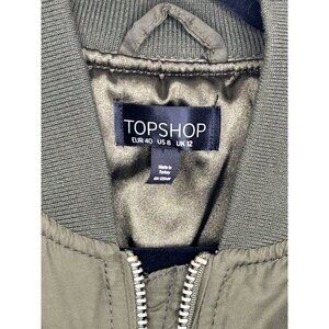 Topshop army green satin bomber jacket womens sz 8 GUC