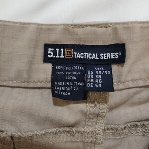 Keywords: 5.11 Tactical Series, mens cargo pants, size 38/29, beige pants, work pants, utility pants, outdoor pants, tactical pants, mens clothing, cargo pockets, polyester cotton blend, khaki pants, casual pants, menswear