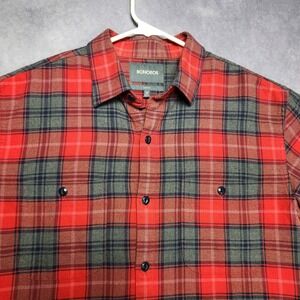 Bonobos Red Gray Plaid Flannel Slim Fit Long Sleeve Button Up Shirt Mens Medium