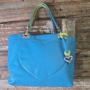 Chic and stylish blue leather reversible tote bag from Brighton with a heart design. Perfect for everyday use. EUC. Clean and smoke free home. No flaws seen.