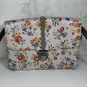 Patricia Nash Floral Leather Crossbody Bag Suede Multiple Compartments