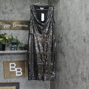 Calvin Klein Womens Embellished Velvet Shift Dress Sequin Black / Silver 10