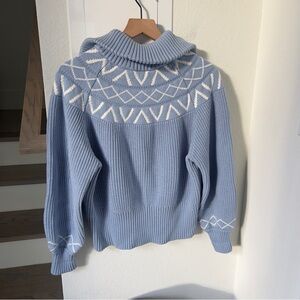 Varley Sigrid Fair Isle Half-Zip Sweater in Light Blue